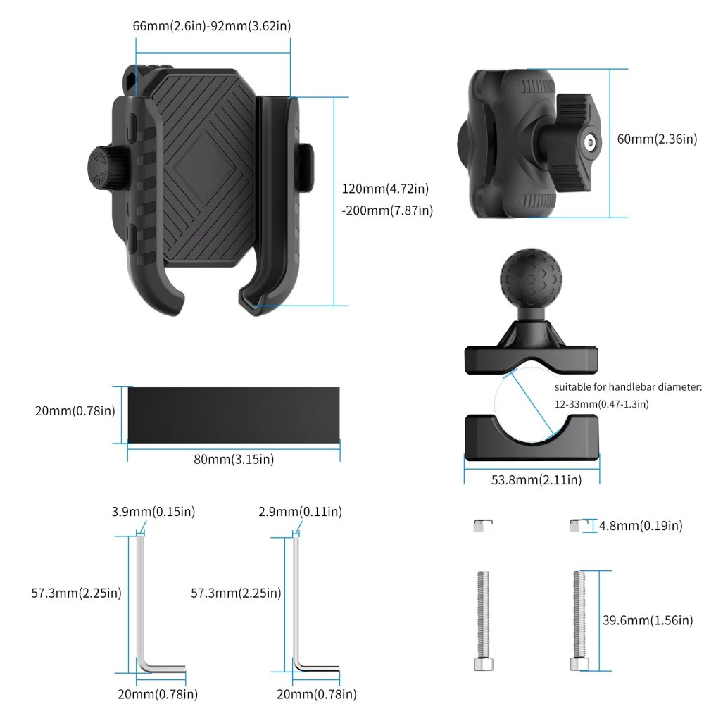 - Držák lze uchytit na řidítka o průměru 12mm - 33 mm.